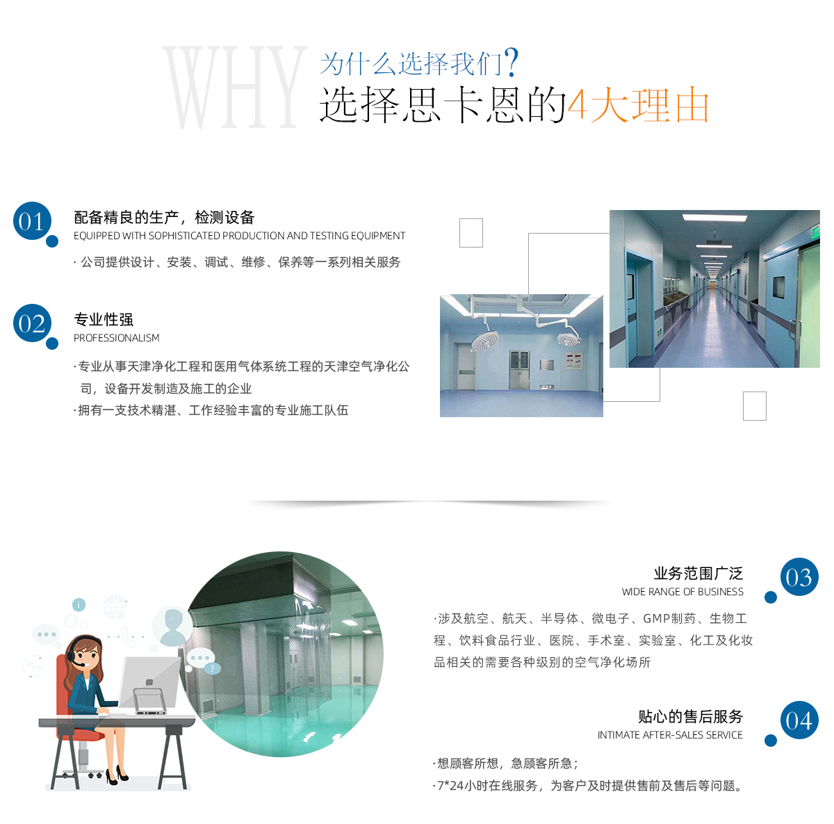 天津思卡恩凈化科技有限公司是從事天津凈化工程和氣體系統工程的天津凈化車間公司,設備開發制造及施工的企業。業務范圍涉及航空、航天、半導體、微電子、GMP制藥、生物工程、飲料食品行業、醫院、手術室、實驗室、化工及化妝品相關的天津無塵車間、商業場所環境等需要各種級別的天津無塵車間。公司提供設計、安裝、調試、維修、保養等一系列相關服務。天津手術室凈化公司技術強,生產設備裝備精良,檢驗設備完善。同時公司還擁有一支工作經驗豐富的施工隊伍。公司將始終秉承“用戶至上,質量過硬,信譽佳、售后好”的宗旨,并將其貫徹到每項工程。以質優取得用戶信賴!由我公司設計施工的許多無塵凈化室、手術室等都得到用戶的好評,所做項目得到中國建筑工程質量監督檢驗中心、中國計量研究院等部門的檢驗認可。主要產品:空氣凈化設備:凈化空調機組,各種無塵凈化工作臺,風淋室,傳遞窗,空氣過濾單元﹙FFU﹚,回風百葉等各種無塵凈化產品。氣體工程:...